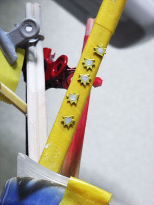 今回使ったものは頭の中に磁石が入っていて、台座に立つポールとくっつけて
